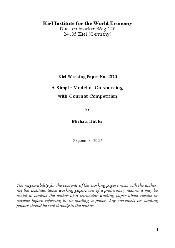 The paper analyses a partial equilibrium outsourcing model with Cournot competition in