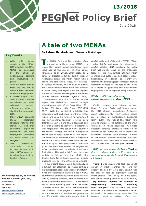 The Middle East and North Africa, often referred to by the acronym MENA, is a region that gained global prominence eight years ago as the site of the Arab spring (Breisinger et al. 2012). What began as a series of protests in Tunisia quickly inspired revolutions across the MENA region whose effects are still visible today. For instance, in several countries, the revolutions turned into armed conflicts which have now resulted in MENA being the region with the highest number of conflicts and refugees in the world (United Nations Refugee Agency 2017).
