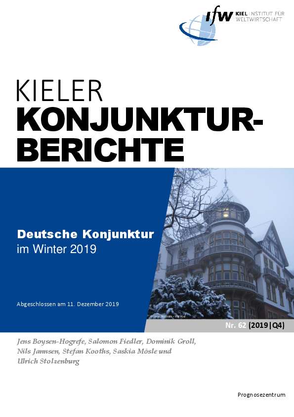 Die Konjunktur in Deutschland fasst nur allmählich wieder Tritt. Nach einem schwachen Sommerhalbjahr dürfte das Bruttoinlandsprodukt auch im Abschlussquartal des laufenden Jahres kaum mehr als stagnieren. Die wirtschaftliche Entwicklung bleibt dabei zweigeteilt. Maßgeblich für den anhaltenden Abschwung, der bereits im vergangenen Jahr einsetzte, ist die deutlich rückläufige Industrieproduktion; mittlerweile befindet sich die Industrie sogar in der Rezession. Dazu beigetragen hat vor allem das eingetrübte weltwirtschaftliche Umfeld, wobei die hohe weltweite wirtschaftspolitische Unsicherheit die auf die Produktion von Investitionsgütern spezialisierte deutsche Wirtschaft in besonderem Maße belastet. Mittlerweile hat sich auch in Deutschland das Investitionsklima spürbar verschlechtert. In der Folge dürften die Unternehmen ihre Investitionstätigkeit in den kommenden Quartalen noch einmal deutlich zurückfahren. Die schwache Industriekonjunktur zieht auch die unternehmensnahen Dienstleistungsbranchen zunehmend in Mitleidenschaft. Demgegenüber befinden sich die konsumnahen Dienstleistungsbereiche weiter auf Expansionskurs. Trotz des nunmehr deutlich langsameren Beschäftigungsaufbaus ziehen die verfügbaren Einkommen der privaten Haushalte weiter deutlich an. Neben den weiter recht kräftigen Lohnzuwächsen tragen dazu auch zahlreiche einkommenserhöhende Maßnahmen seitens der Finanzpolitik bei. Die Baubranche boomt nach wie vor, nicht zuletzt aufgrund der weiterhin günstigen Finanzierungsbedingungen. Im Verlauf des kommenden Jahres dürfte sich die gesamtwirtschaftliche Produktion allmählich wieder etwas beleben. Dafür spricht auch die wieder leicht anziehende Weltkonjunktur. In der Folge dürfte die Industrieproduktion ihren Boden finden und zumindest wieder etwas anziehen. Eine große Dynamik wird die Konjunktur dabei freilich nicht entfalten. Zwar dürfte das Bruttoinlandsprodukt im Jahr 2020 mit 1,1 Prozent deutlich stärker zulegen als im laufenden Jahr, für das sich ein Anstieg von 0,5 Prozent abzeichnet. Für die höhere Zuwachsrate im kommenden Jahr ist jedoch vor allem die dann höhere Zahl an Werktagen verantwortlich. Die Budgetüberschüsse der öffentlichen Haushalte werden deutlich zurückgehen: Während die Ausgaben weiterhin kräftig ausgeweitet werden, werden die Einnahmen durch die schwache Konjunktur spürbar belastet. Nach dem Rekordüberschuss in Höhe von über 60 Mrd. Euro im Jahr 2018 rechnen wir für das Jahr 2021 mit einem leichten Defizit.