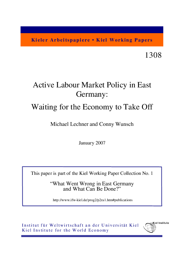 Active Labour Market Policy in East Germany: Waiting for the Economy to take off