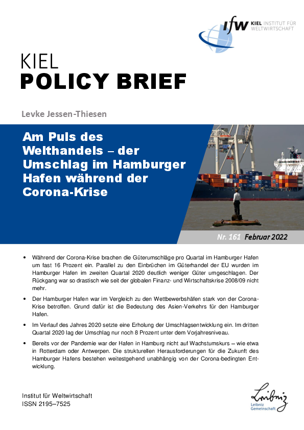 Die Autorin zeigt, dass während der Corona-Krise die Güterumschläge pro Quartal im Hamburger Hafen um fast 16 Prozent einbrachen. Parallel zu den Einbrüchen im Güterhandel der EU wurden im Hamburger Hafen im zweiten Quartal 2020 deutlich weniger Güter umgeschlagen. Der Rückgang des Umschlags war so drastisch wie seit der globalen Wirtschafts- und Finanzkrise in den Jahren 2008/09 nicht mehr. Die Analyse macht deutlich, dass der Hamburger Hafen im Vergleich zu den Wettbewerbshäfen stark von der Corona-Krise betroffen war, da sich hier die pandemiebedingten Rückgänge im für Hamburg wichtigen Asien-Verkehr besonders niederschlugen. Im Verlauf des Jahres 2020 setzte eine Erholung der Umschlagsentwicklung ein, so dass bereits im dritten Quartal 2020 der Umschlag nur noch 8 Prozent unter dem Vorjahresniveau lag. Die Autorin weist aber auch darauf hin, dass bereits vor der Pandemie der Hafen in Hamburg — anders als etwa Rotterdam oder Antwerpen — nicht auf Wachstumskurs war. Die strukturellen Herausforderungen für die Zukunft des Hamburger Hafens bestehen weitestgehend unabhängig von der Entwicklung im Pandemieverlauf.