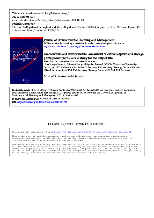 An economic and environmental Assessment of Carbon Capture and Storage (CCS) Power Plants – a Case Study for the City of Kiel