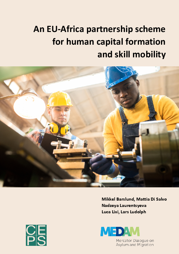 We propose an ambitious EU-Africa partnership scheme for human capital formation and skill mobility that can be embedded into the current framework for EU-Africa dialogue. The scheme comprises three elements: First, extensive vocational training programmes would be set up in African countries, funded by the EU or individual member states, to train participants according to labour market needs in both the EU and African countries. Second, EU member states would issue a substantial number of work permits, offering programme graduates a good chance of employment in the EU while allowing member states to manage the inflow of workers according to their needs. Third, the private sector would be actively involved in planning and implementing vocational training programmes to ensure that graduates are employable in the EU and to facilitate job search and hiring across the Mediterranean.