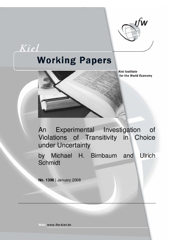 Abstract: Several models of choice under uncertainty imply systematic violations of transitivity of preference. Our experiments explored whether people show patterns of intransitivity predicted by these models. To distinguish “true” violations from those produced by “error,” a model was fit in which each choice can have a different error rate and each person can have a different pattern of true preferences that does not need to be transitive. Error rate for a choice is estimated from preference reversals between repeated presentations of the same choice. Our results showed that very few people repeated intransitive patterns. We can retain the hypothesis that transitivity best describes the data of the vast majority of participants.