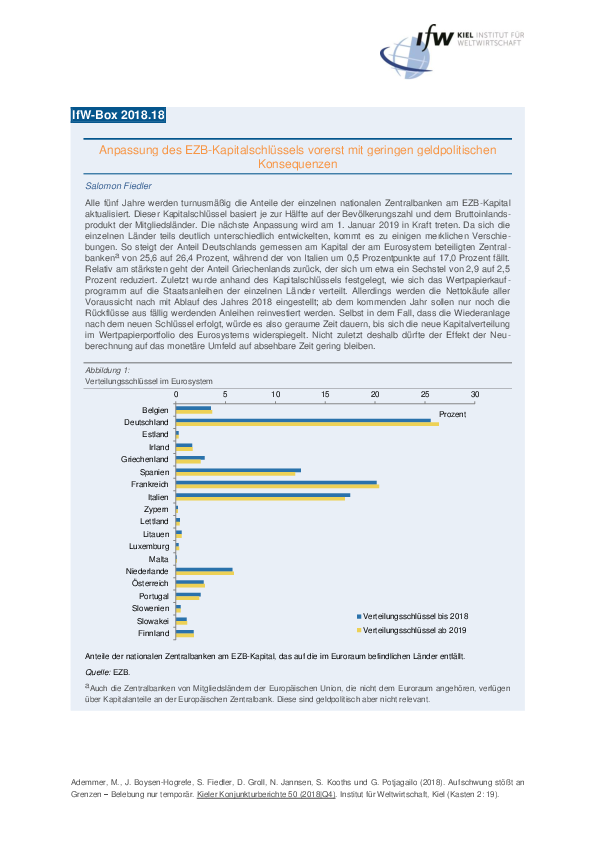 Alle fünf Jahre werden turnusmäßig die Anteile der einzelnen nationalen Zentralbanken am EZB-Kapital aktualisiert. Dieser Kapitalschlüssel basiert je zur Hälfte auf der Bevölkerungszahl und dem Bruttoinlandsprodukt der Mitgliedsländer. Die nächste Anpassung wird am 1. Januar 2019 in Kraft treten. Da sich die einzelnen Länder teils deutlich unterschiedlich entwickelten, kommt es zu einigen merklichen Verschiebungen.