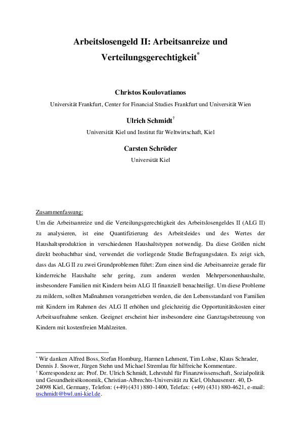 Arbeitslosengeld II: Arbeitsanreize und Verteilungsgerechtigkeit