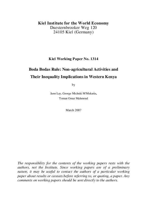 Boda Bodas Rule: Non-agricultural Activities and Their Inequality Implications in Western Kenya