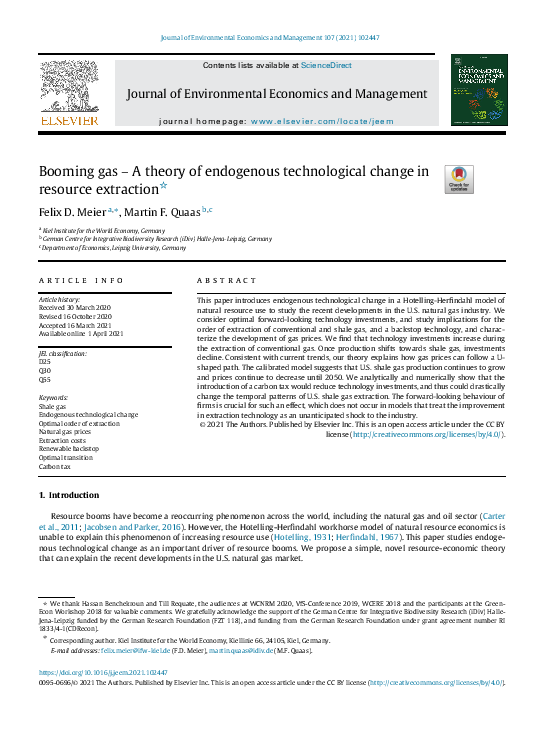 This paper introduces endogenous technological change in a Hotelling-Herfindahl model of natural resource use to study the recent developments in the U.S. natural gas industry. We consider optimal forward-looking technology investments, and study implications for the order of extraction of conventional and shale gas, and a backstop technology, and characterize the development of gas prices. We find that technology investments increase during the extraction of conventional gas. Once production shifts towards shale gas, investments decline. Consistent with current trends, our theory explains how gas prices can follow a U-shaped path. The calibrated model suggests that U.S. shale gas production continues to grow and prices continue to decrease until 2050. We analytically and numerically show that the introduction of a carbon tax would reduce technology investments, and thus could drastically change the temporal patterns of U.S. shale gas extraction. The forward-looking behaviour of firms is crucial for such an effect, which does not occur in models that treat the improvement in extraction technology as an unanticipated shock to the industry.