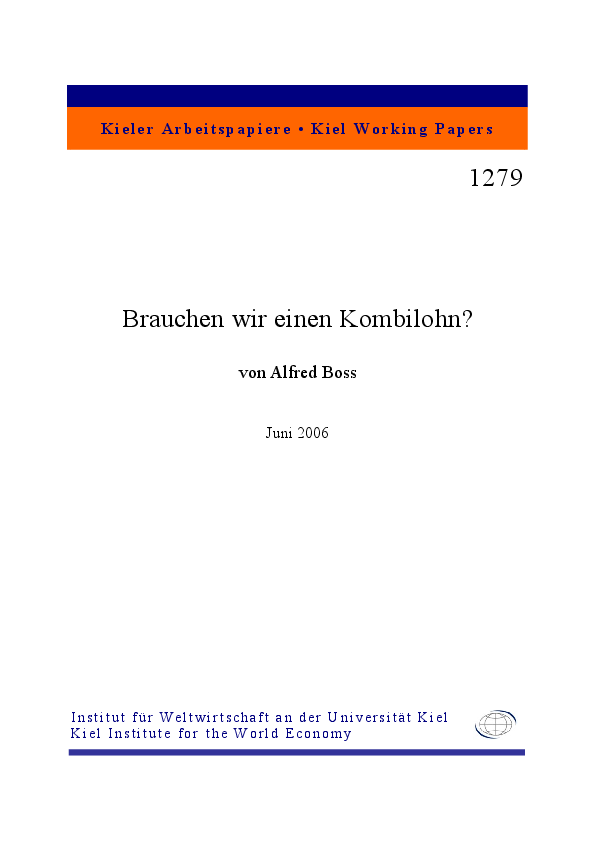 Arbeitspapier Brauchen wir einen Kombilohn? Kieler Arbeitspapiere, 1279 Download Teilen X Facebook Xing LinkedIn Bluesky Link kopieren PDF herunterladen Autoren Boss A. Erscheinungsdatum 06/2006 JEL Classification H24 J38