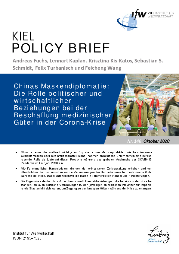 China ist einer der weltweit wichtigsten Exporteure von Medizinprodukten wie beispielsweise Gesichtsmasken oder Desinfektionsmittel. Daher nahmen chinesische Unternehmen eine herausragende Rolle als Lieferant dieser Produkte während des globalen Ausbruchs der COVID-19-Pandemie im Frühjahr 2020 ein. Die Autoren untersuchen mithilfe monatlicher Handelsdaten, die von der chinesischen Zollverwaltung erhoben und veröffentlicht werden, die Veränderungen der Handelsströme für medizinische Güter während der Krise. Dabei unterteilen sie die Daten in kommerziellen Handel und Hilfslieferungen. Sie kommen zu dem Ergebnis, dass sowohl Handelsbeziehungen, die bereits vor der Krise bestanden, als auch politische Verbindungen zu den jeweiligen chinesischen Provinzen für importierende Staaten hilfreich waren, um Zugang zu den knappen Gütern während der Krise zu erlangen.