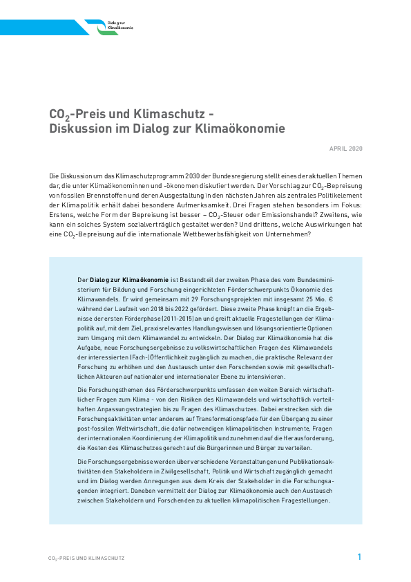 Die Diskussion um das Klimaschutzprogramm 2030 der Bundesregierung stellt eines der aktuellen Themen dar, die unter Klimaökonominnen und -ökonomen diskutiert werden. Der Vorschlag zur CO2-Bepreisung von fossilen Brennstoffen und deren Ausgestaltung in den nächsten Jahren als zentrales Politikelement der Klimapolitik erhält dabei besondere Aufmerksamkeit. Drei Fragen stehen besonders im Fokus: Erstens, welche Form der Bepreisung ist besser – CO2-Steuer oder Emissionshandel? Zweitens, wie kann ein solches System sozialverträglich gestaltet werden? Und drittens, welche Auswirkungen hat eine CO2-Bepreisung auf die internationale Wettbewerbsfähigkeit von Unternehmen?