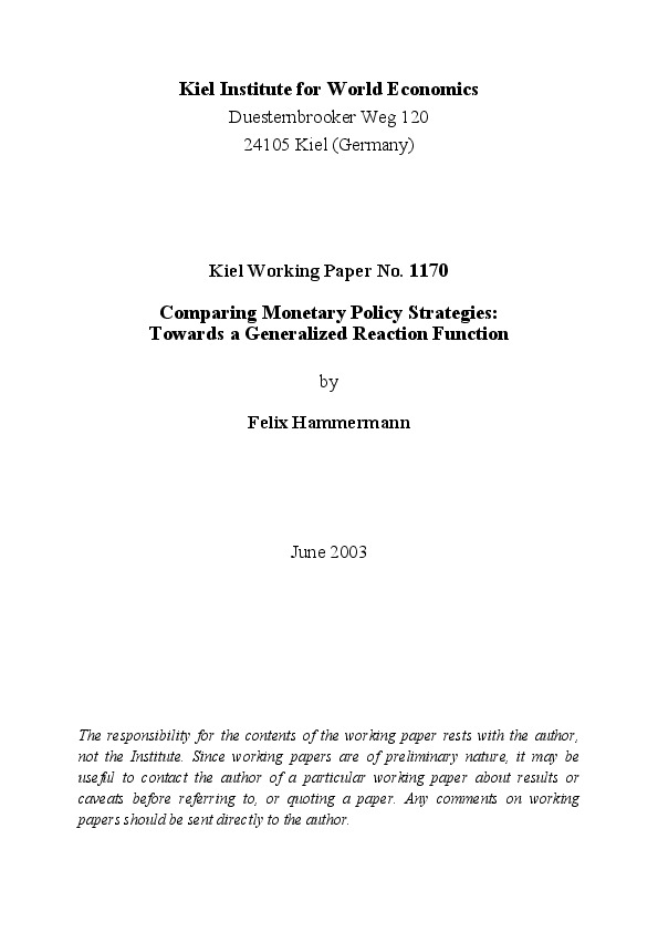 Kieler Arbeitspapiere, 1170
