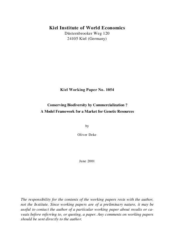 Conversing Biodiversity by Commercialization? A Model Framework for a Market for Genetic Resources