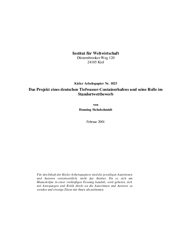 Das Projekt eines deutschen Tiefwasser-Containerhafens und seine Rolle im Standortwettbewerb
