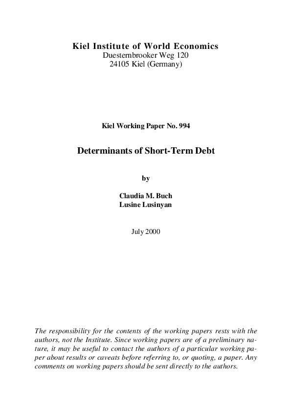 One key focus of the on-going debate on the integration of international financial markets have been measures to lengthen the maturity of foreign debt. Short-term debt is typically considered to be volatile and thus a potential trigger of currency crises. In contrast to the vivid policy debate on these issues, there is relatively little theoretical and empirical evidence on the determinants of short-term debt. This paper summarizes the theoretical literature on the issue and presents a stylized theoretical model, which focuses on the risks and benefits of short-term debt under conditions of uncertainty. Empirical evidence shows that the level of economic development, the presence of financial centres, and the share of loans to banks have a positive impact on the share of short-term loans. OECD membership, in contrast, has a negative influence.