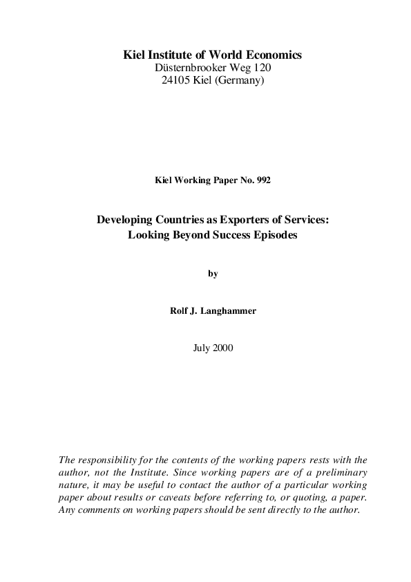 Developing Countries as Exporters of Services: Looking Beyond Success Episodes