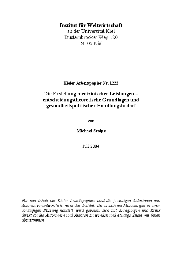 Die Erstellung medizinischer Leistungen - entscheidungstheoretische Grundlagen und gesundheitspolitischer Handlungsbedarf