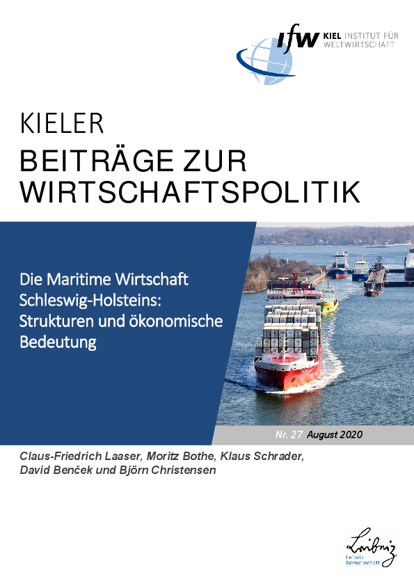 Die „Maritime Wirtschaft“ Schleswig-Holsteins besteht nach Definition der Autoren zum einen aus einem Kernbereich, der unmittelbar maritime Aktivitäten wie Schifffahrt, Hafenwirtschaft, Fischerei, meeresbezogene Produktion und Forschung umfasst („Maritime Wirtschaft I“). Zum anderen kommen Produkte und Dienstleistungen aus breiter aufgestellten Branchen hinzu, die für diesen maritimen Kernbereich Zulieferer oder Abnehmer sind („Maritime Wirtschaft II“). Sie stellen fest, dass die maritimen Umsätze in den Kernbereichen der Maritimen Wirtschaft I in den letzten Jahren deutlich zunahmen, während sie in der Maritimen Wirtschaft II im Durchschnitt eher stagnierten. Die Beschäftigungsentwicklung verlief hingegen in der Maritimen Wirtschaft II dynamischer. Die Maritime Wirtschaft Schleswig-Holsteins ist eher kleinteilig organisiert: Statt großer Unternehmen dominieren kleine und mittlere Unternehmen. Die Autoren kommen zu dem Ergebnis, dass die Maritime Wirtschaft Schleswig-Holsteins zwar kleiner ist, als man es von einem Küstenland erwarten würde, sie leistet aber dennoch einen substanziellen Beitrag zum wirtschaftlichen Ergebnis Schleswig-Holsteins.