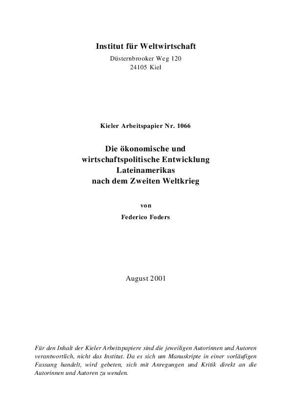 Die ökonomische und wirtschaftspolitische Entwicklung Lateinamerikas nach dem Zweiten Weltkrieg