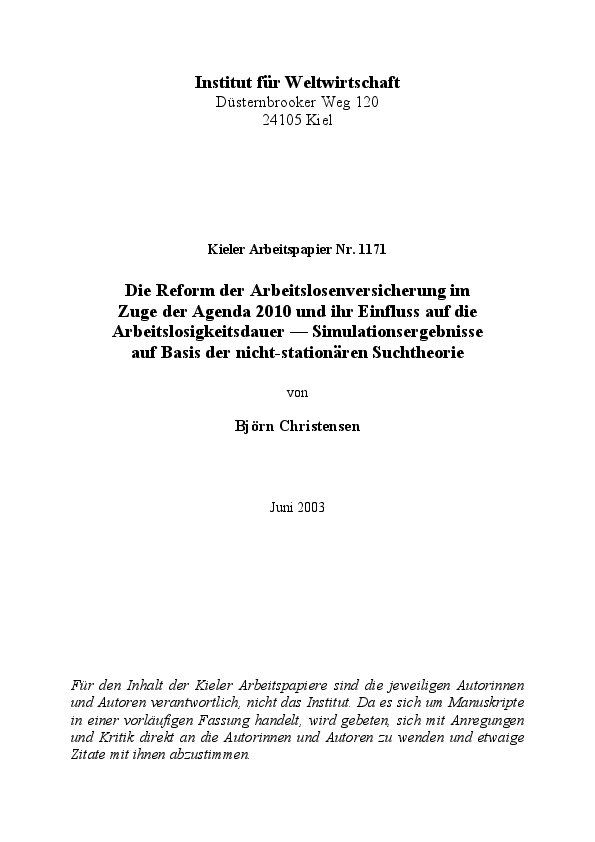 Die Reform der Arbeitslosenversicherung im Zuge der Agenda 2010 und ihr Einfluss auf die Arbeitslosigkeitsdauer - Simulationsergebnisse auf Basis der nicht-stationären Suchtheorie