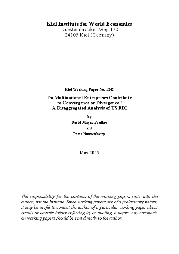 Do Multinational Enterprises Contribute to Convergence or Divergence? A Disaggregated Analysis of US FDI
