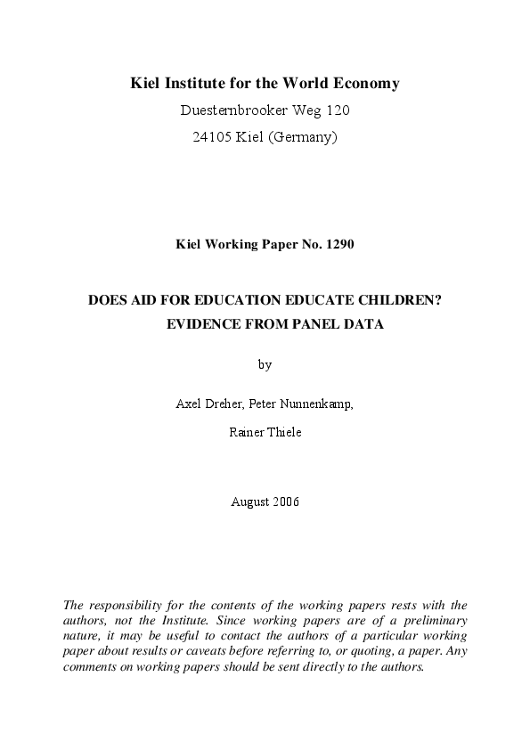 Does Aid for Education Educate Children: Evidence from Panel Data
