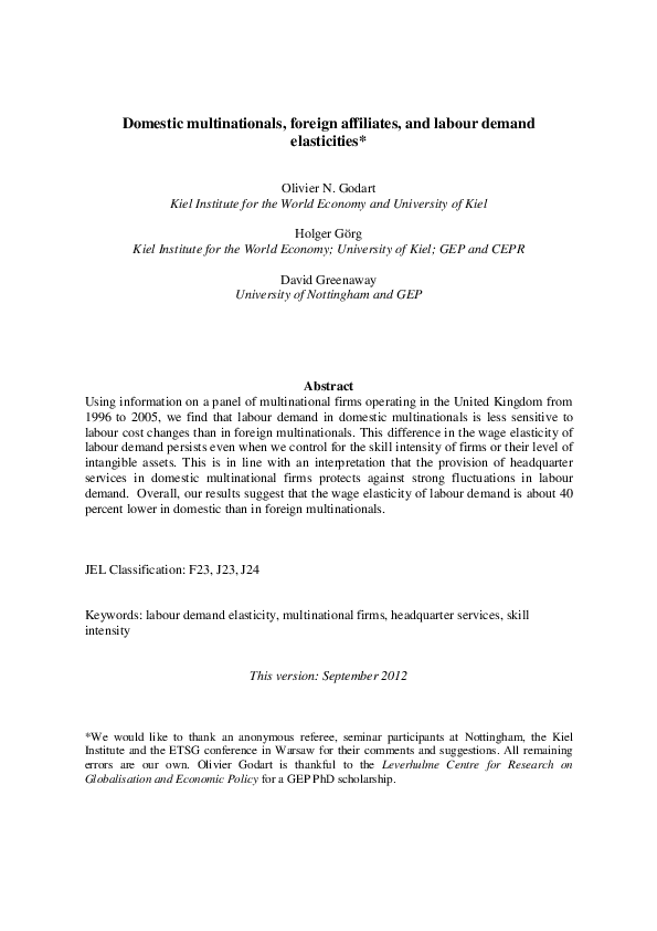 Domestic Multinationals, Foreign Affiliates, and Labour Demand Elasticities