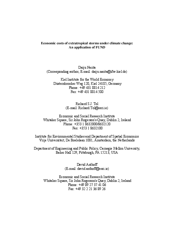 Economic costs of extratropical storms under climate change: an application of FUND