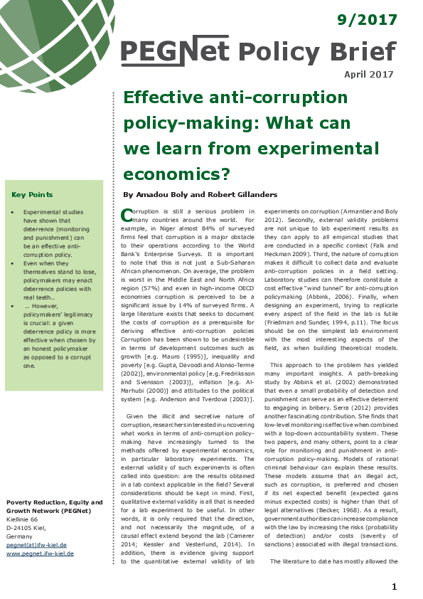 Effective Anti-corruption Policy-making: What can we learn from Experimental Economics?