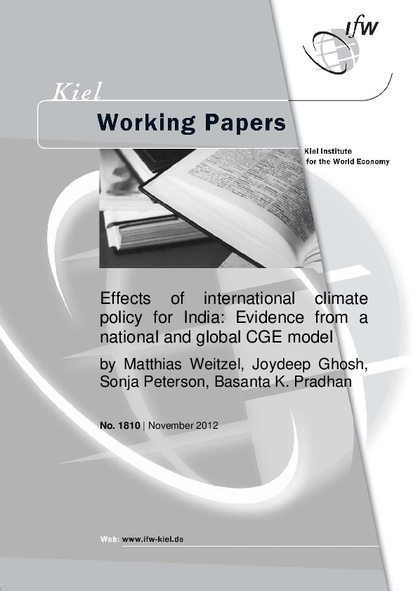 Effects of international climate policy for India: Evidence from a national and global CGE model