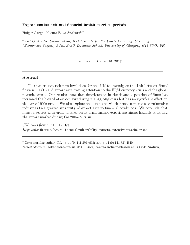 Export market exit and financial health in crises periods