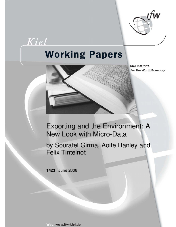Previous aggregate studies ignore additional environmental improvements caused by intra industry reallocations to high productivity/ low pollution firms. They also fail to consider potential differences in abatement efforts by exporting status. Our estimation based on UK firm level data from 1998 to 2002 shows that exporters are 7.5 percent more likely to denote their innovation as having a ‘high’ or ‘very high’ environmental effect. Our findings also show that exporters are 17.5 percent more likely, all things equal, to report that their firm’s innovation cuts the cost of energy/ materials. Our results agree with our environment trade model which predicts that exporters amortize the fixed cost of environmental abatement over their wider output base