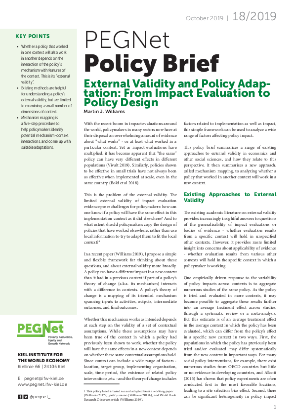 Similar policies, if applied to different contexts, can have many different effects and a policy that has proven successful in one context does not automatically have to be as successful in another context. This displays the problem of the limited external validity of impact evaluations. How can policy makers then know in which context a formerly successful policy could work again? Martin J. Williams argues that the transferability of a policy depends on the interactions of the policy’s mechanisms with features of the new context. To analyse whether a formerly successful policy will work out in another context, Williams proposes a new approach called mechanism mapping which aims to help policymakers identify potential mechanism context interactions, and come up with suitable adaptations.