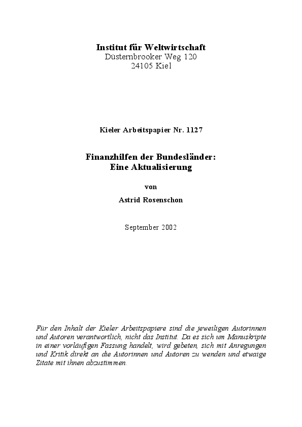 Finanzhilfen der Bundesländer: Eine Aktualisierung