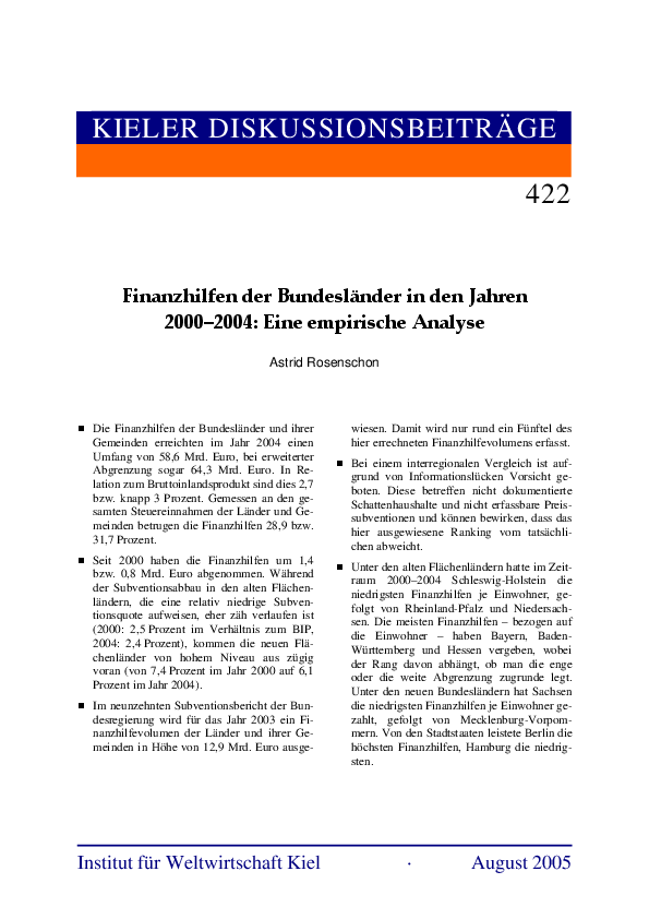 Finanzhilfen der Bundesländer in den Jahren 2000-2004: eine empirische Analyse