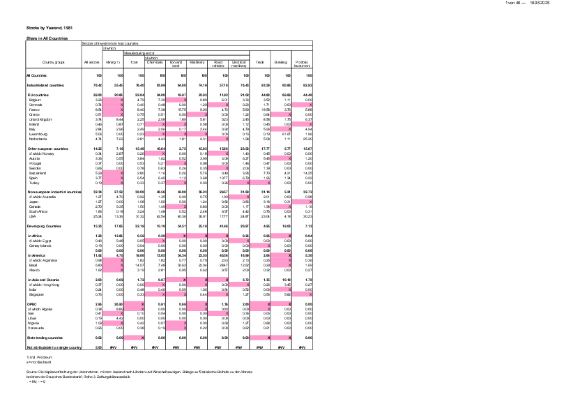 Stocks of Foreign Direct Investment of Germany by Host Countries and Sectors in percent of total (last update 20.06.2025)