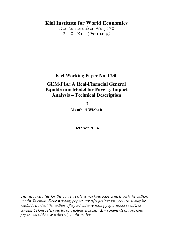GEM-PIA: A Real-Financial General Equilibrium Model for Poverty Impact Analysis - Technical Description