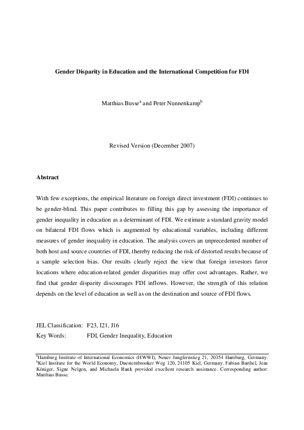 Gender Disparity in Education and the International Competition for FDI