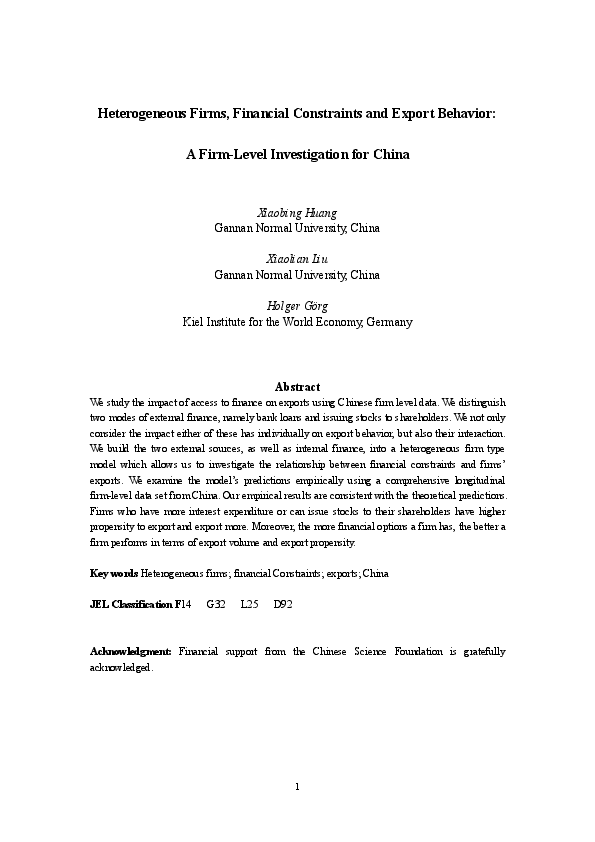 Heterogeneous Firms, Financial Constraints and Export Behavior: A Firm-Level Investigation for China