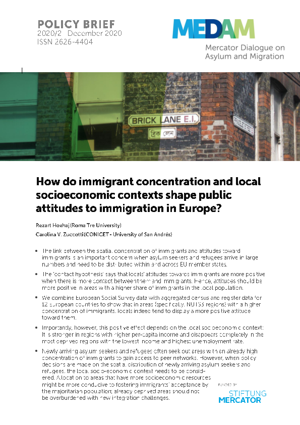 - The link between the spatial concentration of immigrants and attitudes toward immigrants is an important concern when asylum seekers and refugees arrive in large numbers and need to be distributed within and across EU member states.