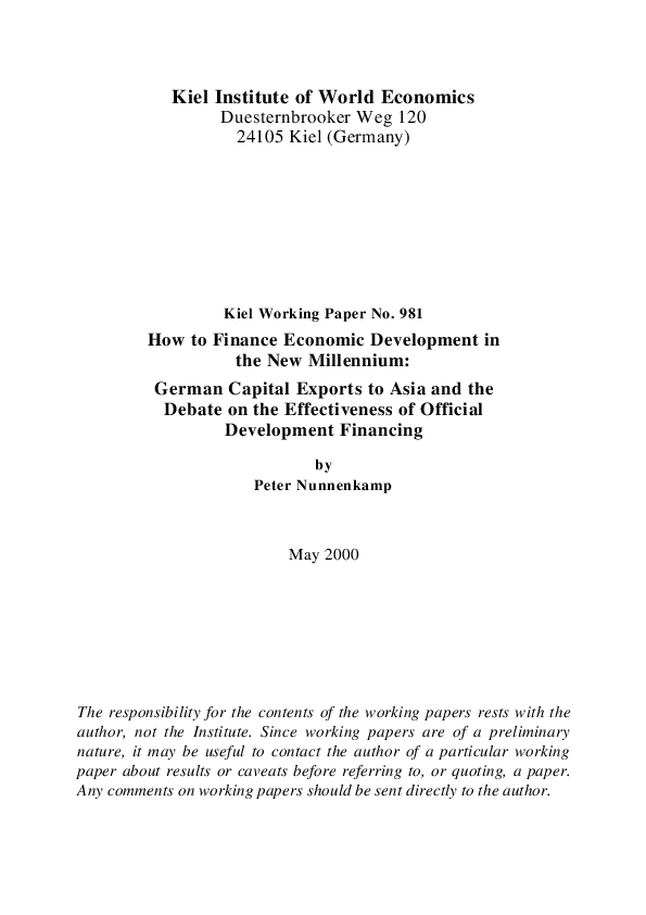 How to Finance Economic Development in the New Millennium: German Capital Exports to Asia and the Debate on the Effectiveness of Official Development Financing
