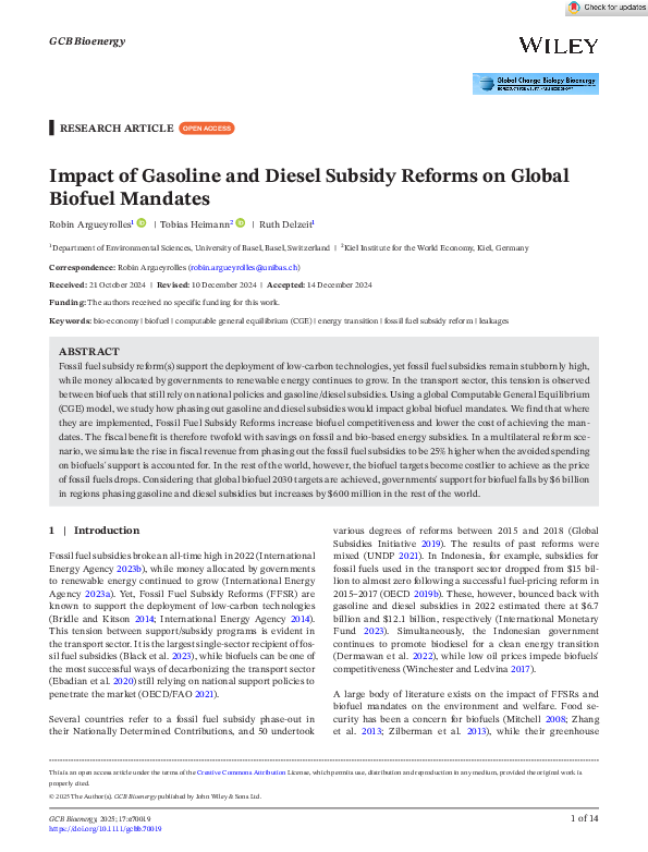 Impact of Gasoline and Diesel Subsidy Reforms on Global Biofuel Mandates