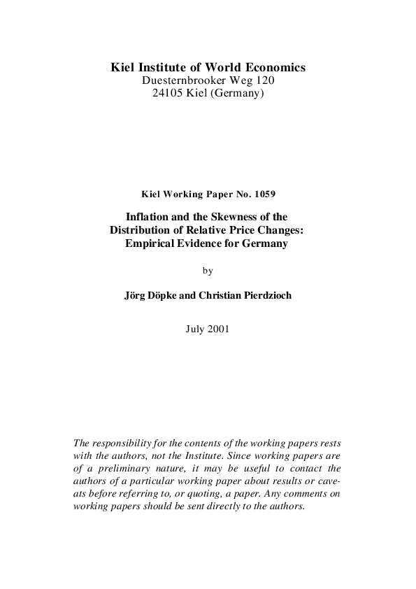 Inflation and the Skewness of the Distribution of Relative Price Changes: Empirical Evidence for Germany