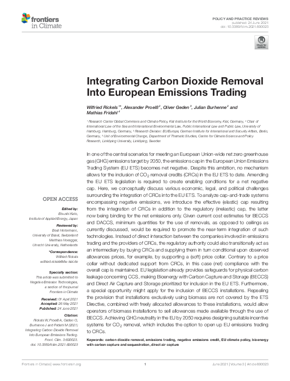 Integrating Carbon Dioxide Removal Into European Emissions Trading