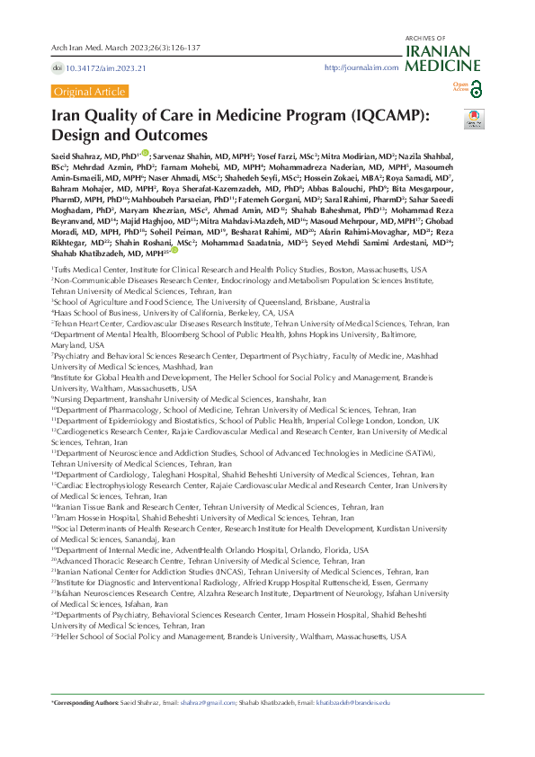 Iran Quality of Care in Medicine Program (IQCAMP): Design and Outcomes