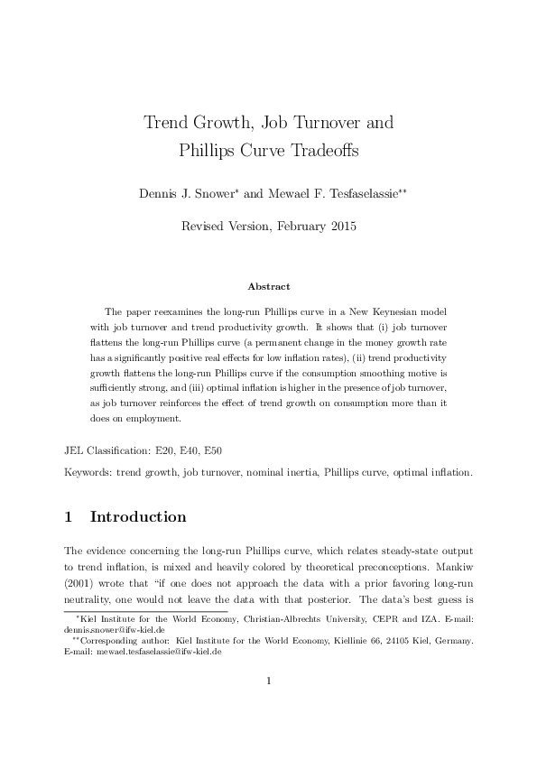 Job Turnover, Trend Growth, and the Long-run Phillips Curve