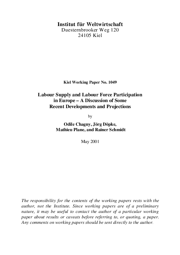 Labour Supply and Labour Force Participation in Europe - A Discussion of Some Recent Developments and Projections
