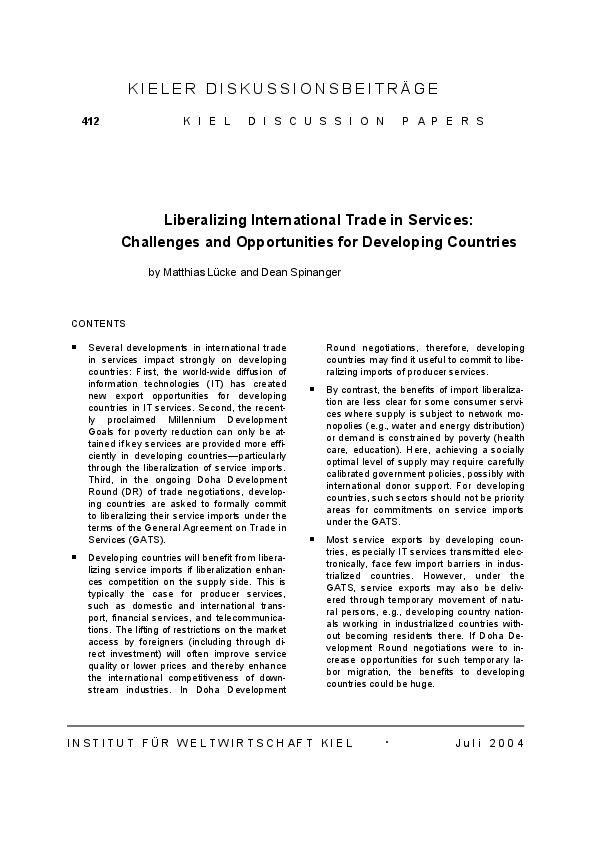 Liberalizing International Trade in Services: Challenges and Opportunities for Developing Countries