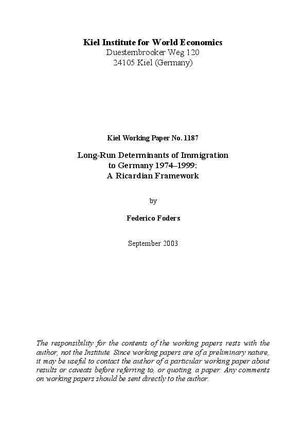 Long-Run Determinants of Immigration to Germany 1974-1999: A Ricardian Framework