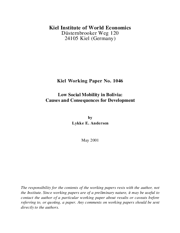 Low Social Mobility in Bolivia: Causes and Consequences for Development